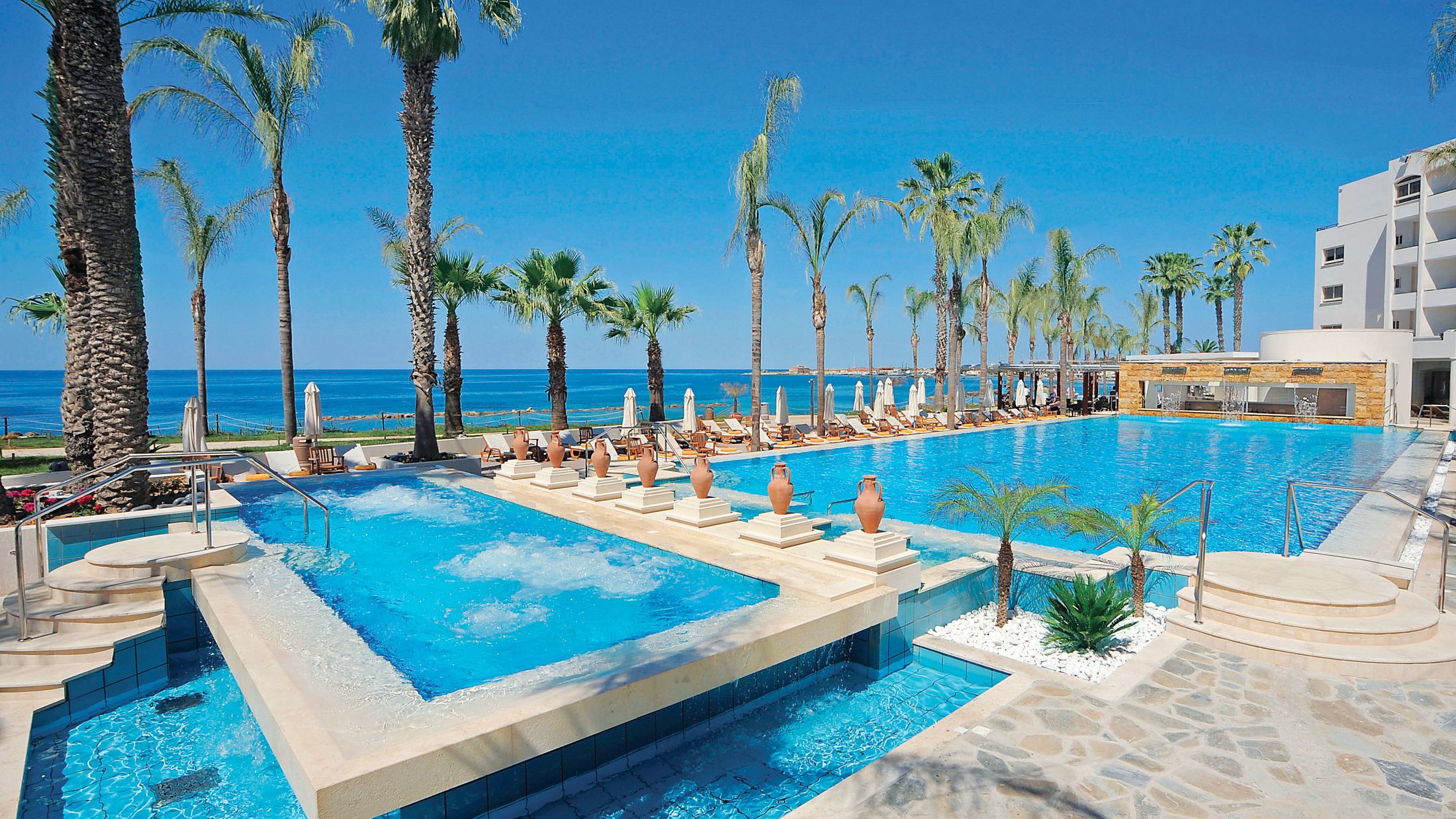 Il bar della struttura è il luogo ideale per gustare un aperitivo al tramonto ammirando i colori del cielo greco, assaggiare i tipici cocktail mediterranei o rinfrescarsi con una bevanda fresca durante le calde giornate estive. Spesso è presente anche un pool bar per non doversi allontanare dalla piscina.