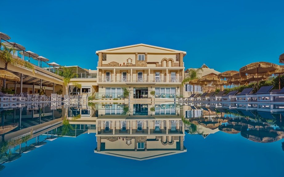 Nelle vicinanze della struttura si trovano numerose attrazioni: le famose Grotte Blu sulla costa settentrionale raggiungibili in barca, l’isola delle tartarughe Marathonissi nel Golfo di Laganas, il caratteristico borgo di Bochali con vista panoramica, e naturalmente la celebre spiaggia del Navagio, simbolo dell’isola. Il centro di Zante città, con il suo lungomare vivace, i negozi, i ristoranti tipici e la vita notturna, è facilmente raggiungibile.