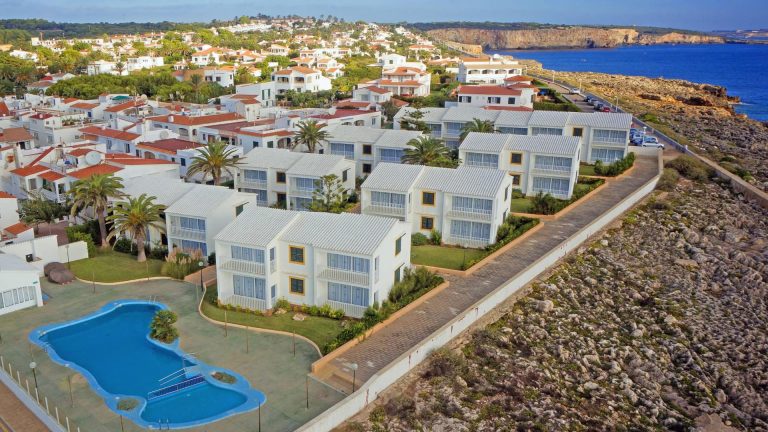 L’Aluasun Far Menorca Hotel gode di una posizione spettacolare sulla costa di S’Algar, nella zona sud-orientale di Minorca, dove l’azzurro intenso del Mediterraneo incontra le scogliere dorate dell’isola. Questa struttura appartamentistica è situata in un punto leggermente elevato che regala viste panoramiche mozzafiato sul mare, ideali per ammirare albe e tramonti indimenticabili dalla privacy del proprio alloggio. S’Algar è una località caratterizzata da un’atmosfera serena e rilassata, perfetta per chi cerca una fuga dalla frenesia quotidiana immerso nella natura incontaminata di Minorca. L’hotel fa parte del resort Alua che comprende quattro strutture alberghiere, permettendo agli ospiti di accedere a servizi condivisi che arricchiscono notevolmente l’esperienza di soggiorno. Il centro del piccolo villaggio con supermercati, ristoranti e bar è raggiungibile con una piacevole passeggiata di circa 5 minuti. Il mare è a portata di mano: piccole calette rocciose con acque cristalline perfette per lo snorkeling si trovano nelle immediate vicinanze, mentre la spiaggia sabbiosa di Punta Prima dista circa 10 minuti in auto. L’aeroporto di Mahón è comodamente raggiungibile in 15 minuti, mentre la capitale dell’isola con il suo affascinante porto storico si trova a 20 minuti di auto.