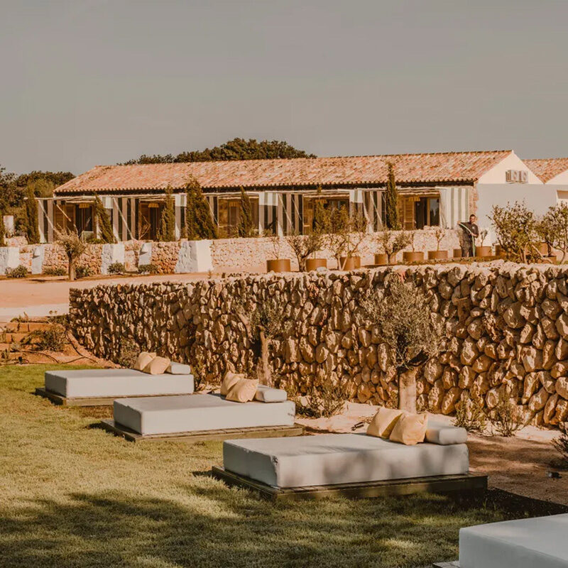 Agriturismo boutique di lusso 5 stelle riservato agli adulti, ricavato da una tenuta ottocentesca tra uliveti e campagna minorchina, con spa, ristorante gourmet e atmosfera esclusiva.