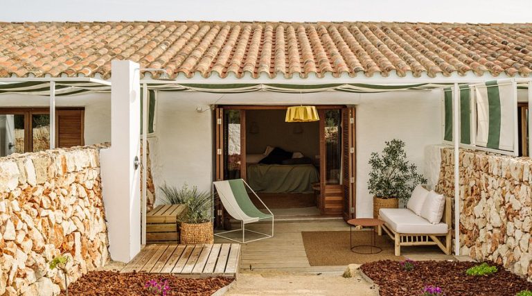 L’Amagatay Menorca è un gioiello nascosto nel cuore rurale dell’isola, a pochi chilometri dal villaggio di Alaior nella zona centrale di Minorca. Questa straordinaria struttura sorge all’interno di una tenuta agricola di oltre 30 ettari risalente al XIX secolo, completamente immersa nel verde degli uliveti centenari, dei carrubi e della tipica macchia mediterranea minorchina. L’atmosfera che si respira è quella di un rifugio esclusivo dove il tempo sembra essersi fermato, lontano dal turismo di massa e perfettamente integrato nel paesaggio rurale dell’isola dichiarata Riserva della Biosfera dall’UNESCO. La posizione centrale permette di raggiungere facilmente tutte le principali attrattive di Minorca: la spettacolare spiaggia di Son Bou, la più lunga dell’isola, dista appena 10 minuti in auto, mentre le affascinanti calette della costa sud come Cala en Porter sono a breve distanza. I siti archeologici talayotici più importanti, tra cui Torre d’en Galmés e Torralba d’en Salort, si trovano nelle immediate vicinanze, permettendo di immergersi nella storia millenaria dell’isola. La capitale Mahón è raggiungibile in 20 minuti, Ciutadella in circa 30 minuti. L’Aeroporto di Mahón dista soli 7 km, rendendo gli spostamenti estremamente comodi.