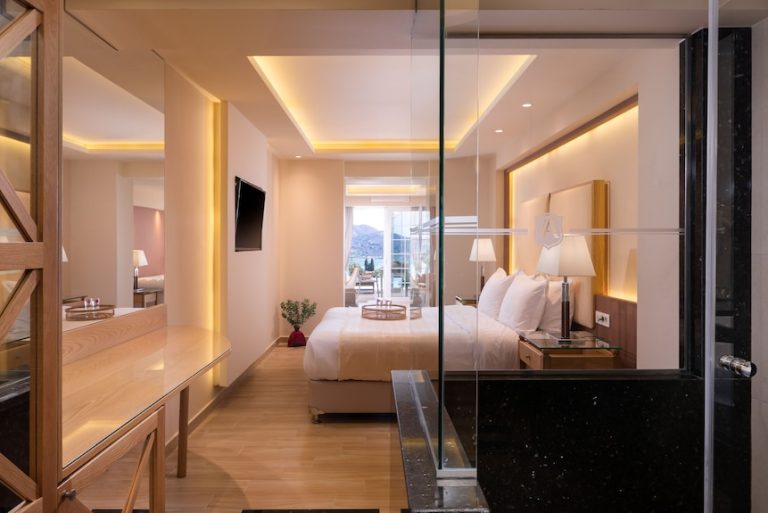 Il ristorante principale serve colazione, pranzo e cena con cucina internazionale e greca. Il pool bar e il lounge bar offrono snack, bevande e cocktail in un’atmosfera elegante.