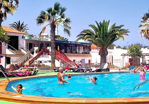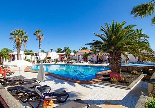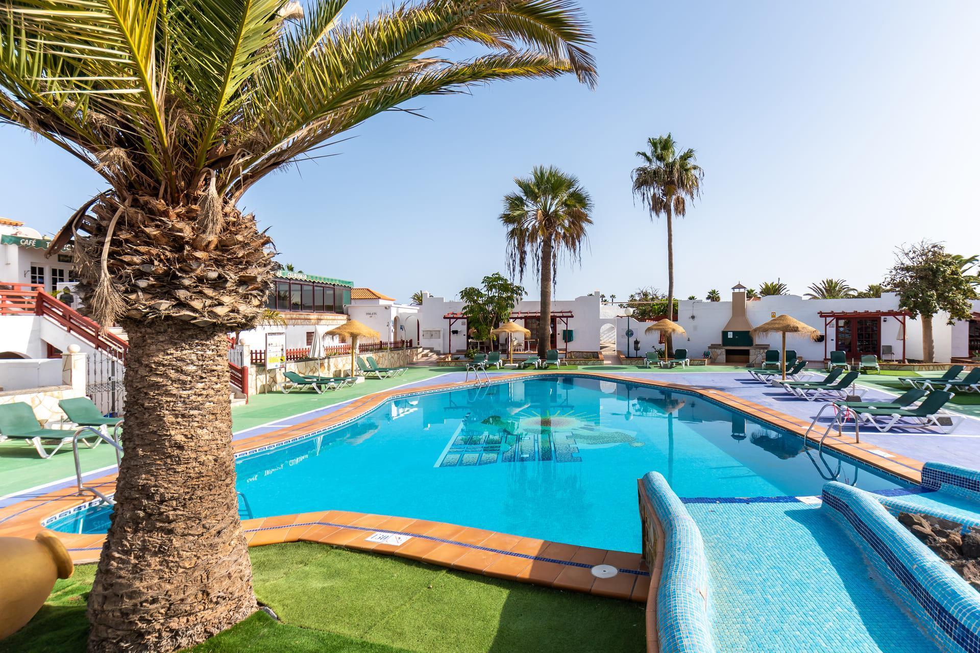 Complesso di bungalow a Caleta de Fuste con piscina e giardini. Formula ideale per famiglie che cercano spazi e indipendenza.