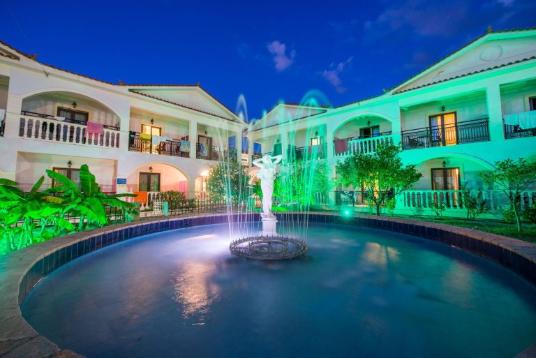 La piscina all’aperto è circondata da un’ampia terrazza con lettini. La spiaggia di Laganas, raggiungibile in 5 minuti a piedi, offre sabbia dorata e acque cristalline poco profonde. Lettini e ombrelloni sono disponibili a noleggio sulla spiaggia pubblica.