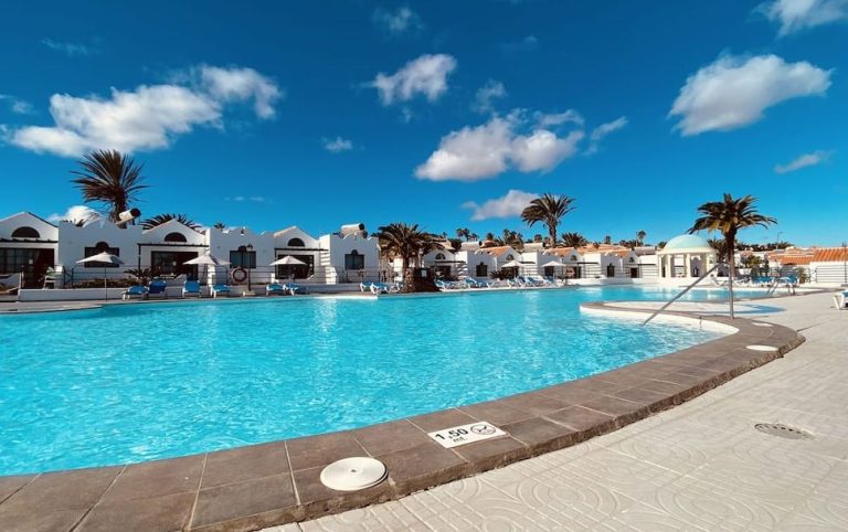 Complesso di bungalow a Caleta de Fuste gestito da Casthotels. Soluzione pratica per famiglie vicino a spiaggia e servizi.