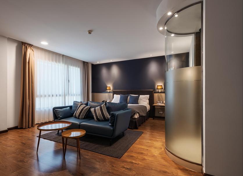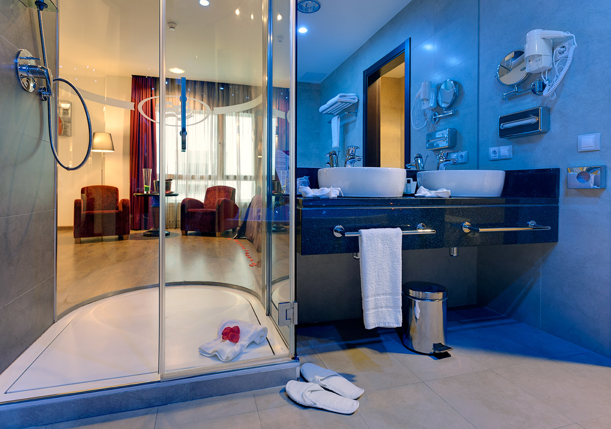 Le camere dell’hotel sono modernamente arredate e progettate per garantire il massimo comfort. Ogni camera dispone di aria condizionata regolabile, TV a schermo piatto con canali satellitari, connessione Wi-Fi gratuita, scrivania funzionale e cassaforte. I bagni privati sono spaziosi, dotati di doccia o vasca, asciugacapelli e set di cortesia di qualità. Le camere dispongono di letti particolarmente comodi con materassi di alta qualità e biancheria pregiata. L’arredamento include armadio spazioso e comodini. Le camere sono insonorizzate per garantire il massimo riposo. La pulizia è impeccabile con servizio giornaliero. Sono disponibili diverse tipologie di camere: standard, superior, familiari, suite e camere accessibili.