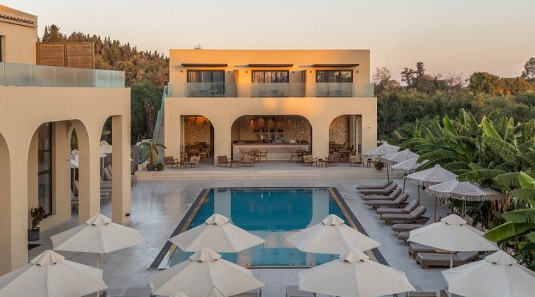 Elegante hotel 4 stelle a Corfù, Corfù. Struttura moderna con ottimi servizi, piscina e posizione strategica per esplorare l’isola. Perfetto per famiglie e coppie.