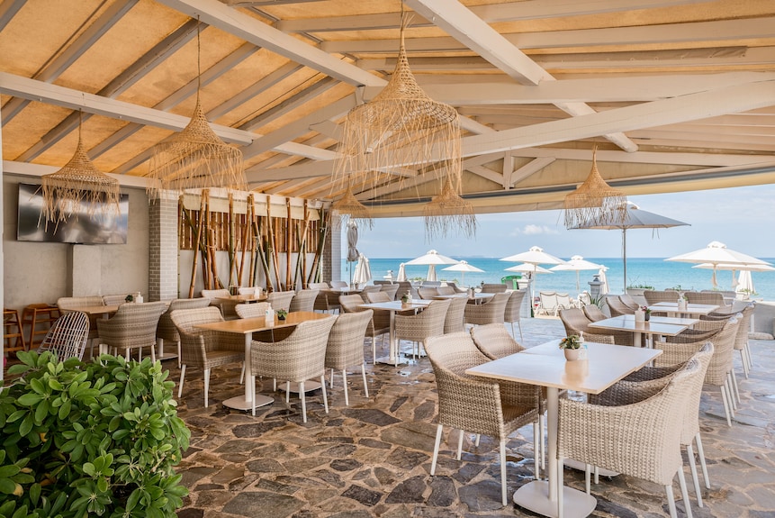 L’atmosfera è informale e rilassata, tipica delle strutture greche tradizionali.