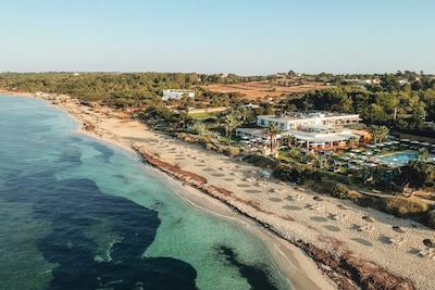 Boutique hotel 4 stelle sulla spiaggia di Migjorn con beach club, spa e atmosfera esclusiva.
