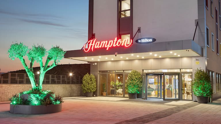 Affidabile Hampton by Hilton vicino all’aeroporto. Perfetto per famiglie con colazione gratuita.