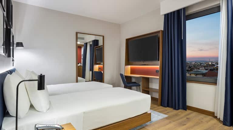 Le camere dell’Hampton By Hilton Istanbul Airport, Arnavutkoy combinano comfort moderno e praticità, progettate per soddisfare sia viaggiatori leisure che business. Le dimensioni variano da 20-25 metri quadrati per le camere standard a 35-50 metri quadrati per le suite. Gli spazi sono ottimizzati per funzionalità senza sacrificare il comfort. I letti queen size o king size dispongono di materassi a molle insacchettate o memory foam di qualità superiore, biancheria in cotone con alta densità di fili (200-300), coperte confortevoli e selezione di cuscini (morbidi e rigidi disponibili su richiesta). I bagni moderni sono dotati di docce walk-in con soffioni effetto pioggia, alcune camere superior hanno vasche da bagno. Rivestimenti in ceramica di qualità, lavandini moderni, specchi illuminati, asciugamani in spugna di cotone rinnovati quotidianamente. Set di cortesia completo che include shampoo, balsamo, gel doccia, sapone, cuffia, kit dentale, kit da rasatura. Asciugacapelli a parete. Accappatoi e pantofole disponibili nelle categorie superior e suite. TV LED da 40-49 pollici con canali satellitari internazionali, canali locali turchi, canali sportivi e news internazionali. Sistema pay-per-view con film recenti. Wi-Fi ad alta velocità gratuito e illimitato, adeguato per lavoro e streaming. Prese elettriche multiple incluse porte USB per ricarica dispositivi. Scrivania funzionale con sedia confortevole e lampada da lavoro, perfetta per business travelers o per pianificare itinerari. Poltrona o divano con tavolino per area relax. Minibar con selezione standard di bevande e snack (a pagamento). Bollitore elettrico con selezione di tè turchi e caffè solubile gratuiti. Bicchieri e tazze. Armadio con appendiabiti sufficienti, ripiani, cassaforte digitale per oggetti di valore e laptop. Specchio a figura intera. Ferro e asse da stiro disponibili su richiesta. Aria condizionata con controllo individuale della temperatura e riscaldamento per l’inverno. Finestre con doppi vetri per buon isolamento acustico. Tende oscuranti per riposo ottimale. Telefono con linea diretta, sveglia. Alcune camere offrono balconi privati con sedie e tavolino, ideali per godersi il caffè mattutino o rilassarsi la sera. Servizio in camera disponibile con menu selezionato durante orari estesi. Servizio pulizia quotidiano con cambio asciugamani e riassetto.