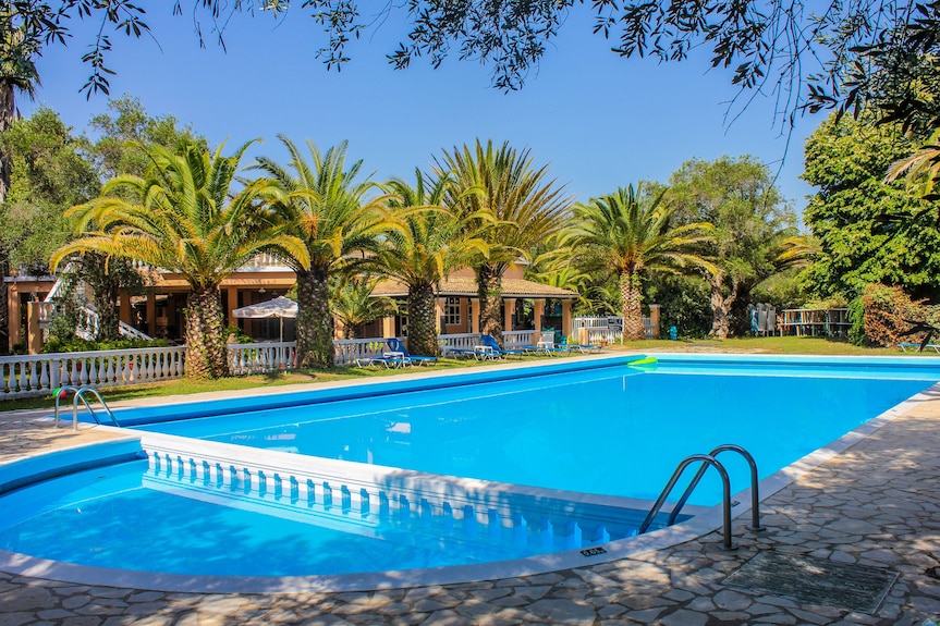 Confortevole hotel 3 stelle a Corfù, Corfù. Buon rapporto qualità-prezzo con servizi essenziali, piscina e posizione ideale per le vacanze estive.