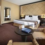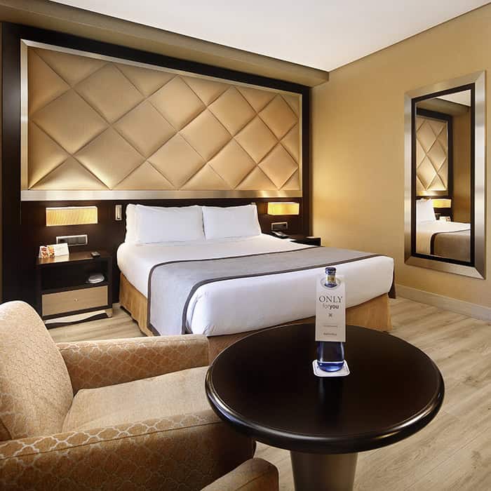 Le camere dell’hotel sono modernamente arredate e progettate per garantire il massimo comfort. Ogni camera dispone di aria condizionata regolabile, TV a schermo piatto con canali satellitari, connessione Wi-Fi gratuita, scrivania funzionale e cassaforte. I bagni privati sono spaziosi, dotati di doccia o vasca, asciugacapelli e set di cortesia di qualità. Le camere dispongono di letti particolarmente comodi con materassi di alta qualità e biancheria pregiata. L’arredamento include armadio spazioso e comodini. Le camere sono insonorizzate per garantire il massimo riposo. La pulizia è impeccabile con servizio giornaliero. Sono disponibili diverse tipologie di camere: standard, superior, familiari, suite e camere accessibili.