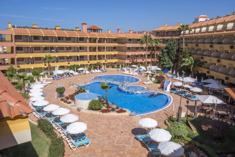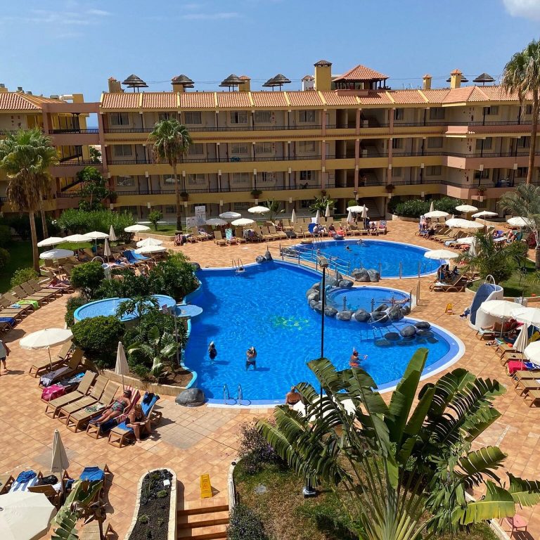 La piscina esterna, spesso riscaldata durante i mesi più freschi, è il cuore dell’hotel: circondata da palme e lettini, offre il luogo ideale per rilassarsi al sole. L’ampio solarium con lettini e ombrelloni (gratuiti o a pagamento a seconda della struttura) permette di godere del clima eccezionale di Tenerife tutto l’anno.