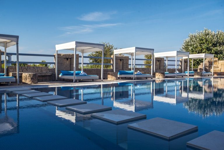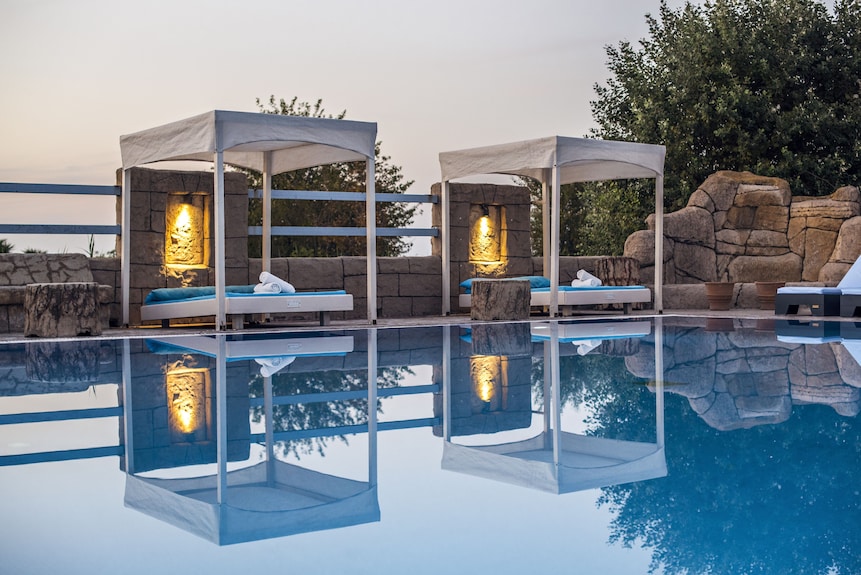 La piscina è il punto di ritrovo principale per gli ospiti durante il giorno.