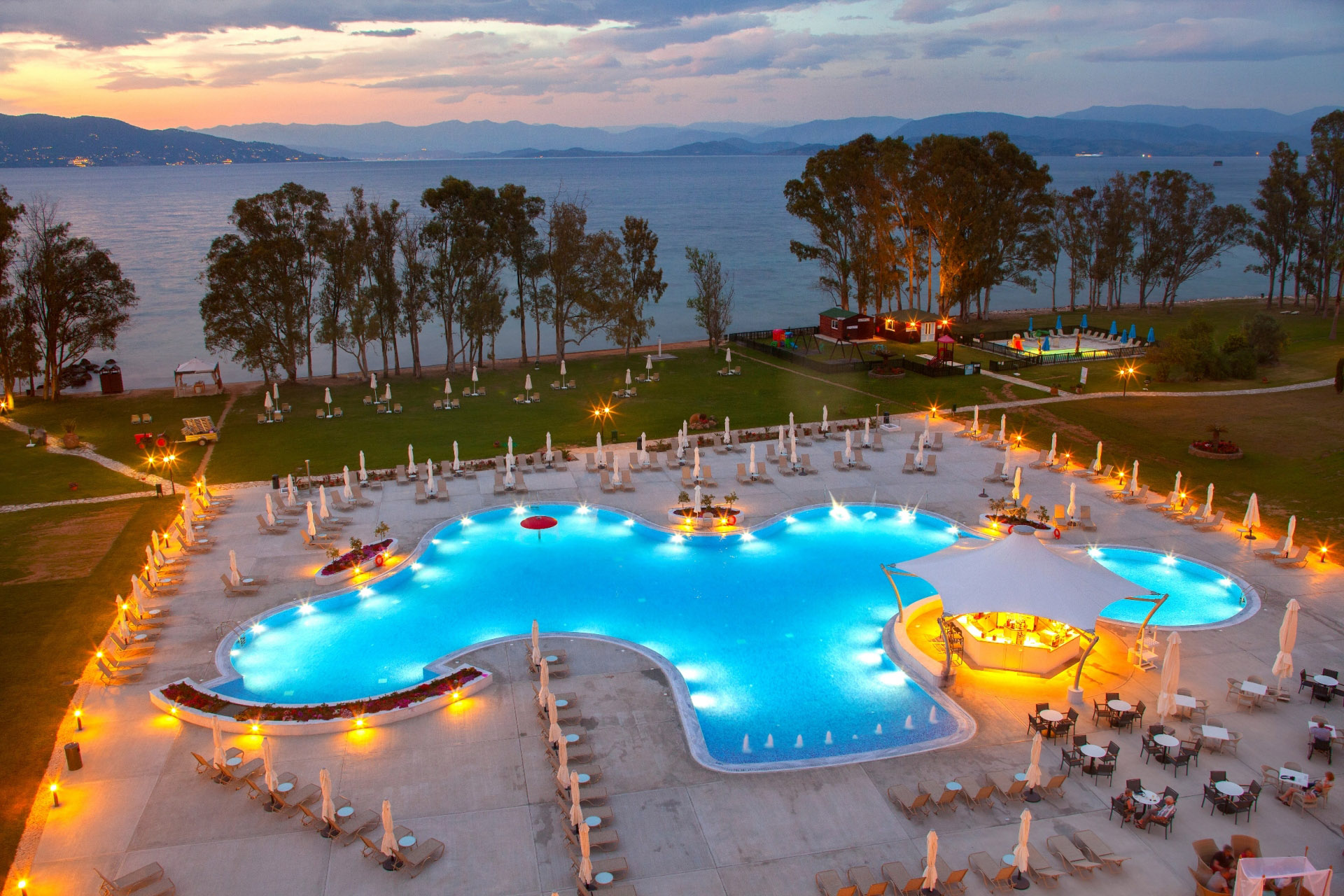 Elegante hotel 4 stelle a Città di Corfù, Corfù. Struttura moderna con ottimi servizi, piscina e posizione strategica per esplorare l’isola. Perfetto per famiglie e coppie.