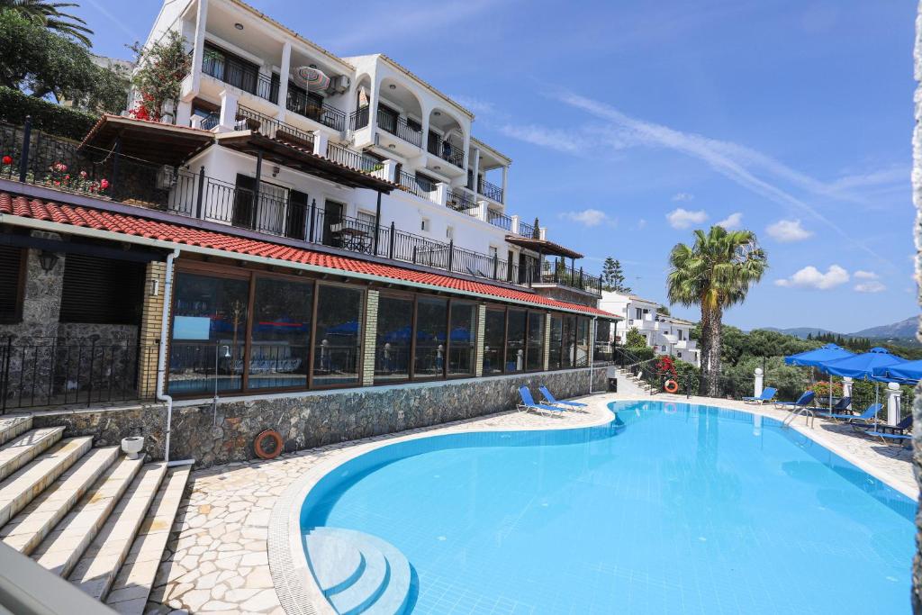 Confortevole hotel 3 stelle a Kommeno, Corfù. Buon rapporto qualità-prezzo con servizi essenziali, piscina e posizione ideale per le vacanze estive.
