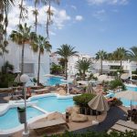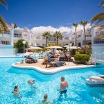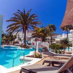 La piscina esterna, spesso riscaldata durante i mesi più freschi, è il cuore dell’hotel: circondata da palme e lettini, offre il luogo ideale per rilassarsi al sole. L’ampio solarium con lettini e ombrelloni (gratuiti o a pagamento a seconda della struttura) permette di godere del clima eccezionale di Tenerife tutto l’anno.