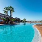 La piscina esterna, spesso riscaldata durante i mesi più freschi, è il cuore dell’hotel: circondata da palme e lettini, offre il luogo ideale per rilassarsi al sole. L’ampio solarium con lettini e ombrelloni (gratuiti o a pagamento a seconda della struttura) permette di godere del clima eccezionale di Tenerife tutto l’anno.