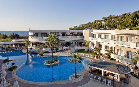 L’hotel vanta una piscina esterna con vista panoramica sul mare, circondata da un solarium attrezzato con lettini e ombrelloni. La famosa spiaggia di Tsilivi, con sabbia dorata e acque cristalline poco profonde, è raggiungibile in pochi minuti. La spiaggia offre tutti i servizi: lettini, ombrelloni, bar e sport acquatici.