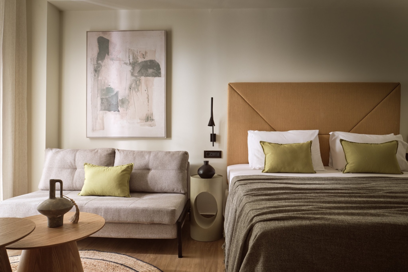 L’hotel propone camere e suite arredate con eleganza, caratterizzate da tonalità calde e materiali di qualità. Ogni sistemazione dispone di aria condizionata, TV satellitare a schermo piatto, minibar, bollitore con set per caffè e tè, cassaforte, asciugacapelli, prodotti da bagno e balcone o terrazza privata. Le camere Superior e le Suite offrono spazi più ampi e viste privilegiate sul mare.