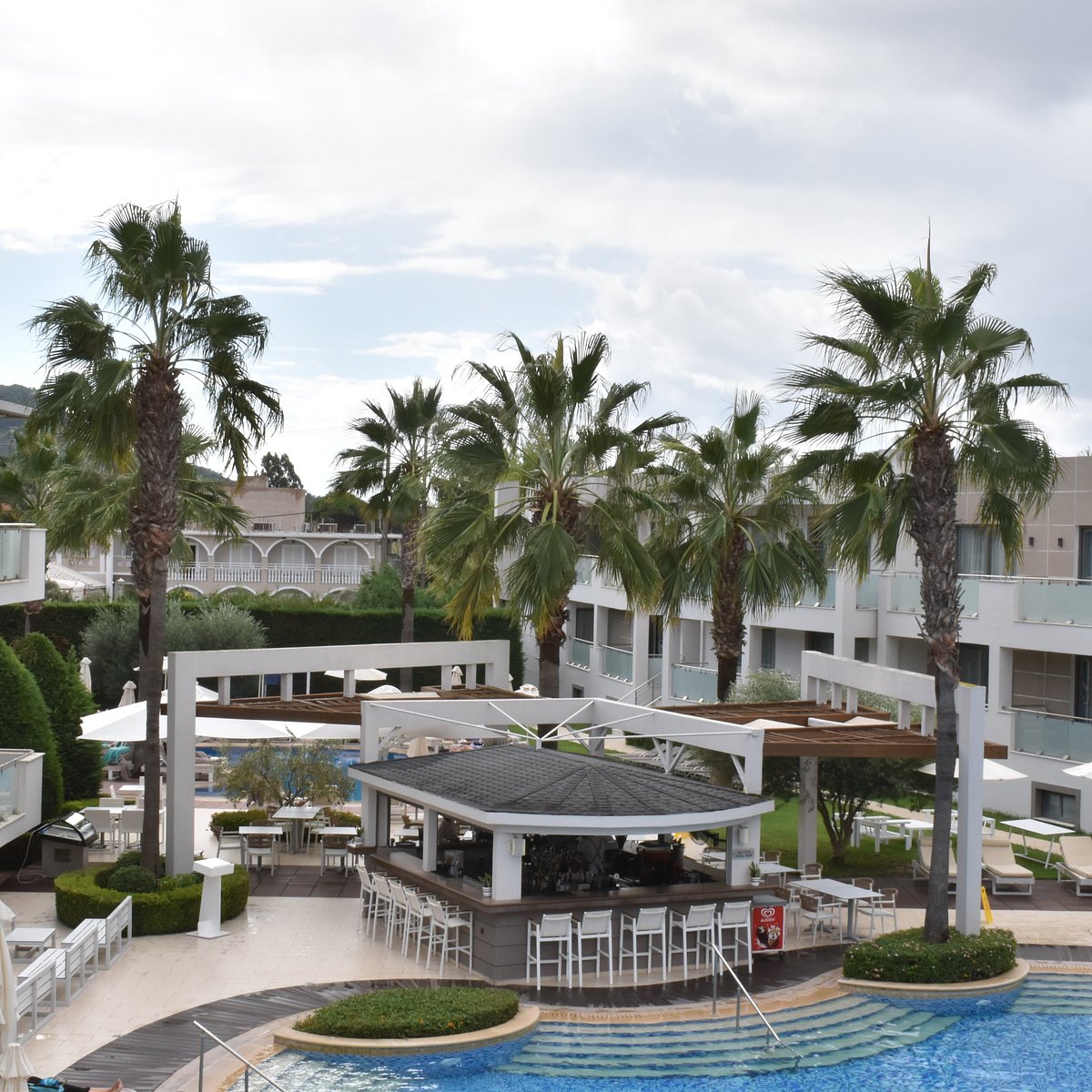 La piscina esterna con vista mare è circondata da un elegante solarium con lettini e ombrelloni. La spiaggia sabbiosa di Tsilivi, ideale per famiglie con acque poco profonde e servizi completi, dista pochi minuti dall’hotel ed è raggiungibile con servizio navetta gratuito. Lettini e ombrelloni sono disponibili sulla spiaggia.