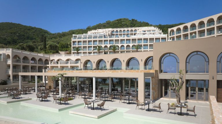 Resort di lusso 5 stelle a Corfù, Corfù. Struttura esclusiva con servizi premium, spa, piscine e accesso diretto alla spiaggia. L’ideale per una vacanza indimenticabile nella splendida isola greca.