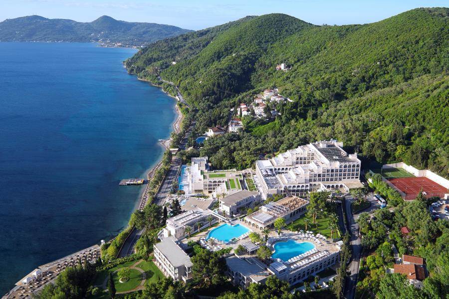 Resort di lusso 5 stelle a Corfù, Corfù. Struttura esclusiva con servizi premium, spa, piscine e accesso diretto alla spiaggia. L’ideale per una vacanza indimenticabile nella splendida isola greca.