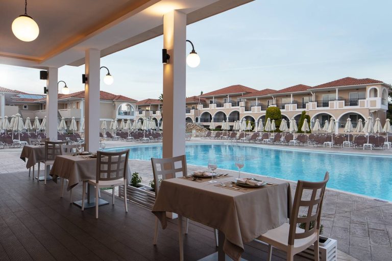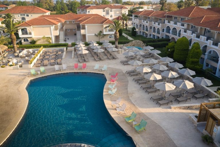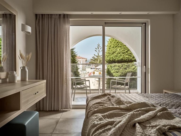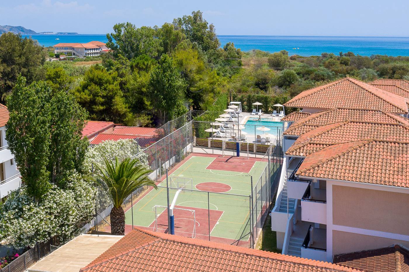 L’hotel dispone di una piscina esterna con vista, circondata da un solarium attrezzato con lettini e ombrelloni. La spiaggia sabbiosa di Kalamaki, con acque cristalline e poco profonde, dista pochi minuti. Essendo area protetta per la nidificazione delle tartarughe, offre un’esperienza unica a contatto con la natura.