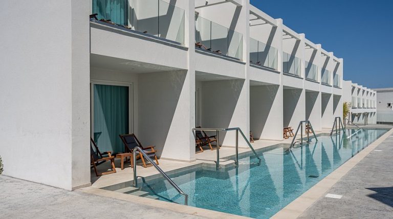 Le suite sono progettate con eleganza estrema, caratterizzate da design contemporaneo e materiali pregiati. Ogni sistemazione dispone di aria condizionata, TV a schermo piatto con streaming, sistema audio, minibar premium, macchina Nespresso, cassaforte, prodotti da bagno esclusivi, accappatoi e pantofole di lusso, e ampia terrazza privata. Molte suite includono piscina privata a sfioro con vista mare.