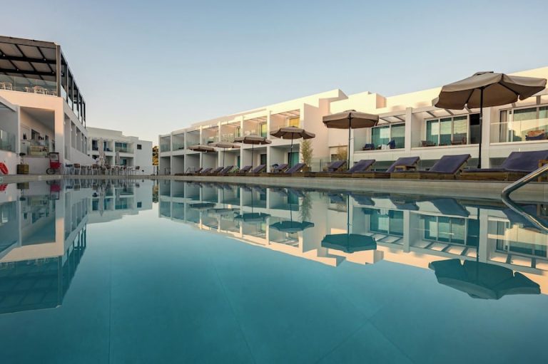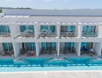 La piscina principale a sfioro con vista panoramica sul mare è spettacolare, circondata da un solarium esclusivo con cabanas private. Molte suite dispongono di piscina privata. La spiaggia di Tsilivi è raggiungibile in pochi minuti; l’hotel può organizzare beach service su richiesta.