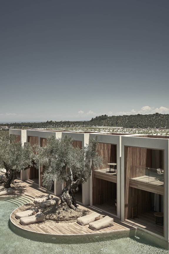 L’Olea All Suite Hotel è un esclusivo hotel 5 stelle situato su una collina panoramica a Tsilivi, circondato da un antico uliveto. Membro dei Design Hotels, la struttura accoglie ospiti dai 12 anni in su, offrendo un’atmosfera sofisticata e tranquilla. L’architettura tropicale-modernista si fonde armoniosamente con il paesaggio naturale, creando un’oasi di pace con viste mozzafiato sul Mar Ionio. La spiaggia di Tsilivi dista 950 metri, la città di Zante 10 km, l’aeroporto 9 km.