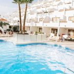 La piscina esterna, spesso riscaldata durante i mesi più freschi, è il cuore dell’hotel: circondata da palme e lettini, offre il luogo ideale per rilassarsi al sole. L’ampio solarium con lettini e ombrelloni (gratuiti o a pagamento a seconda della struttura) permette di godere del clima eccezionale di Tenerife tutto l’anno.