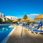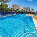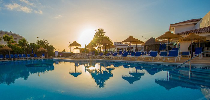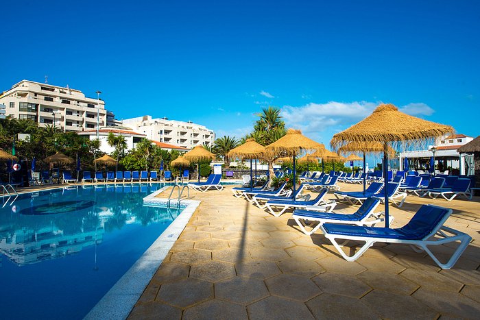 La piscina esterna, spesso riscaldata durante i mesi più freschi, è il cuore dell’hotel: circondata da palme e lettini, offre il luogo ideale per rilassarsi al sole. L’ampio solarium con lettini e ombrelloni (gratuiti o a pagamento a seconda della struttura) permette di godere del clima eccezionale di Tenerife tutto l’anno.