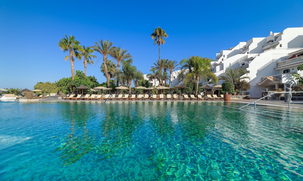 La piscina esterna, spesso riscaldata durante i mesi più freschi, è il cuore dell’hotel: circondata da palme e lettini, offre il luogo ideale per rilassarsi al sole. L’ampio solarium con lettini e ombrelloni (gratuiti o a pagamento a seconda della struttura) permette di godere del clima eccezionale di Tenerife tutto l’anno.