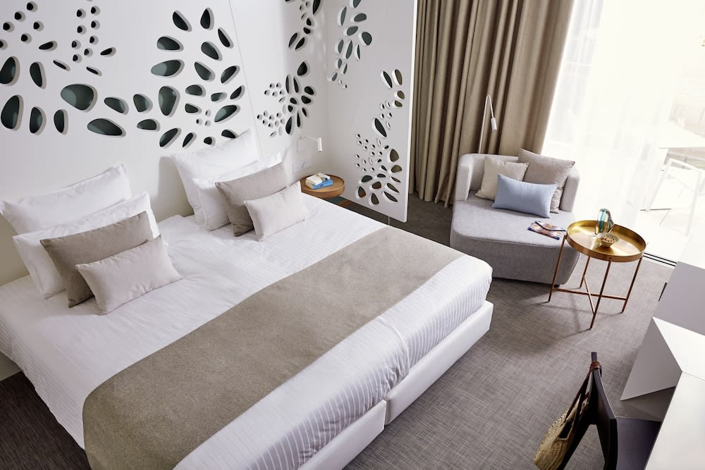 Camere Robinson per adulti: eleganti, moderne e confortevoli. Design pulito con colori rilassanti. Vista mare o giardino.