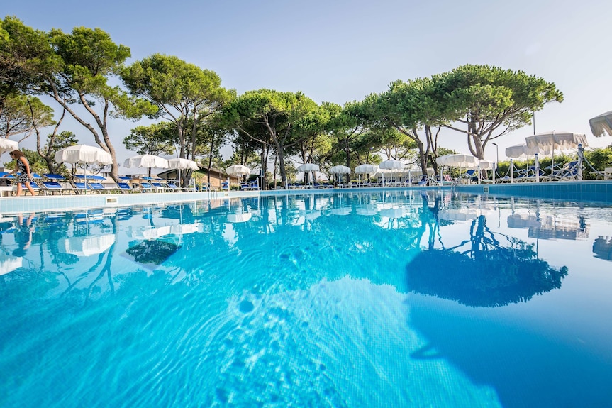 La piscina è il punto di ritrovo principale per gli ospiti durante il giorno.
