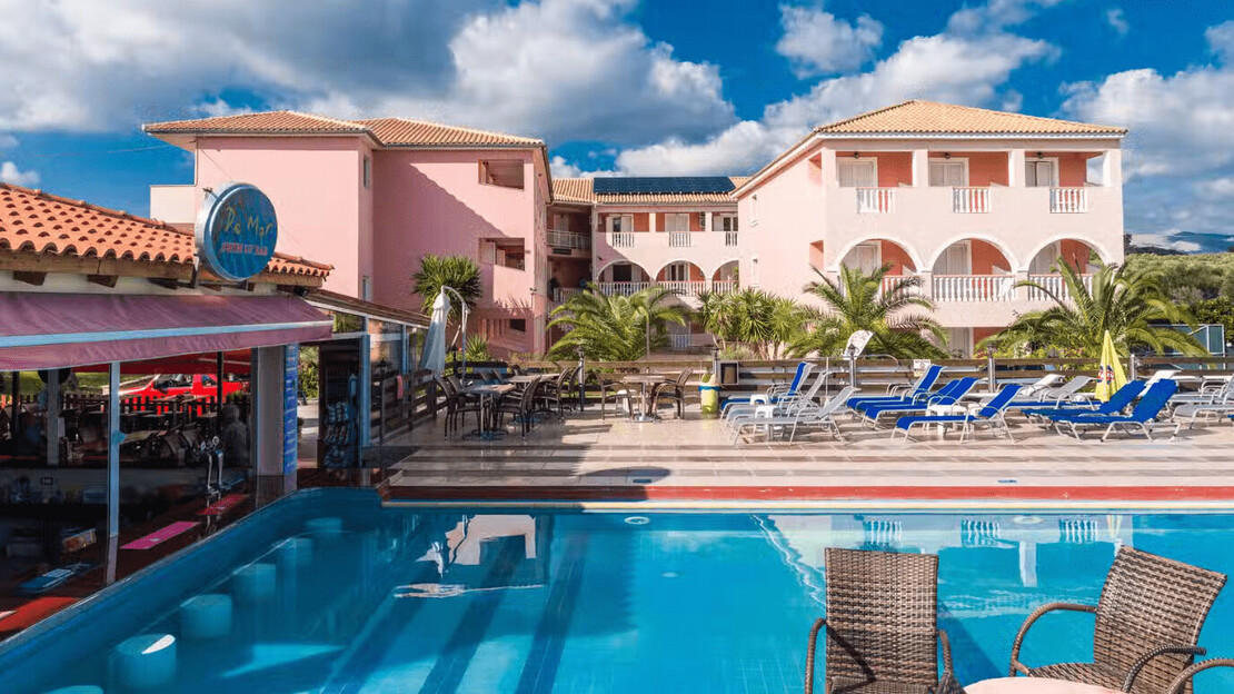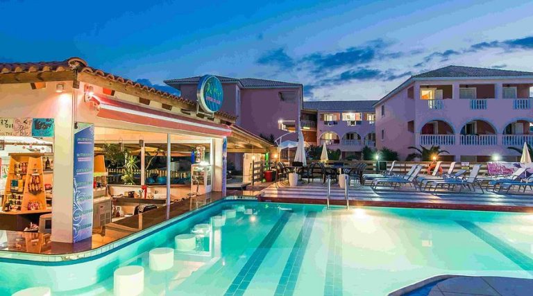 Hotel 3 stelle a Laganas con piscina e camere confortevoli. Posizione ideale per chi vuole vivacità serale e spiaggia nelle vicinanze.