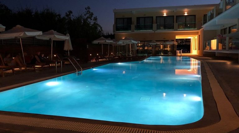 La piscina all’aperto è il cuore della vita sociale della struttura durante le giornate di sole: circondata da palme e vegetazione mediterranea, offre il luogo ideale per rilassarsi, prendere il sole sui comodi lettini e rinfrescarsi con un tuffo nelle acque cristalline. L’ampio solarium con lettini e ombrelloni permette di godere del clima eccezionale di Zante, caratterizzato da oltre 300 giorni di sole all’anno.