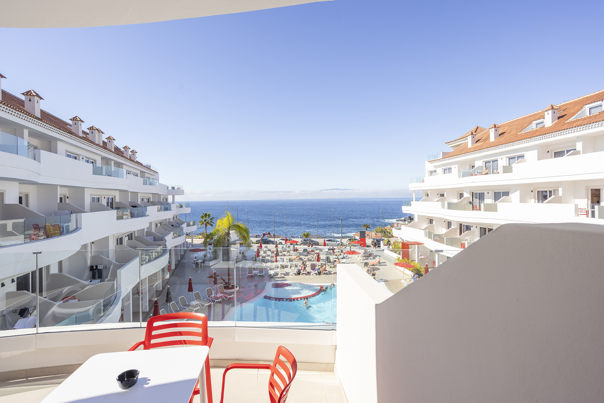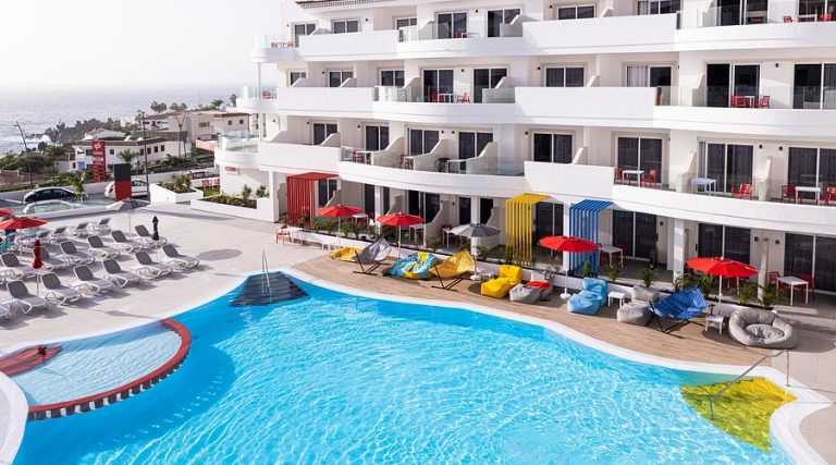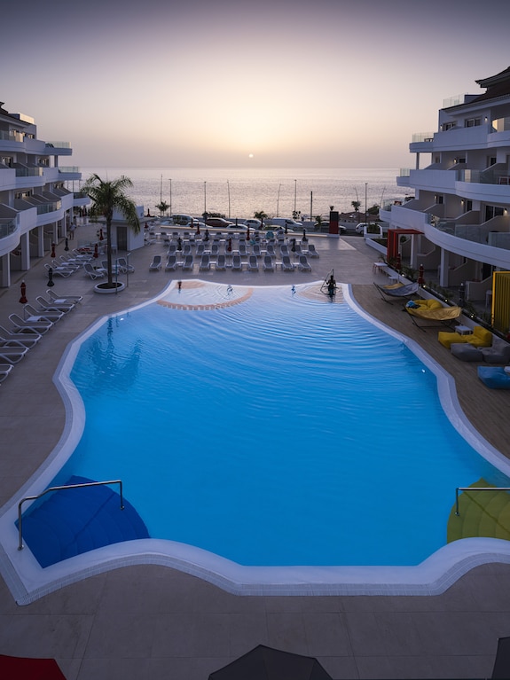 La piscina esterna, spesso riscaldata durante i mesi più freschi, è il cuore dell’hotel: circondata da palme e lettini, offre il luogo ideale per rilassarsi al sole. L’ampio solarium con lettini e ombrelloni (gratuiti o a pagamento a seconda della struttura) permette di godere del clima eccezionale di Tenerife tutto l’anno.