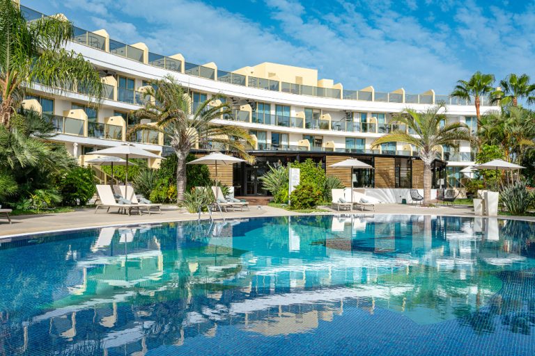 La piscina esterna, spesso riscaldata durante i mesi più freschi, è il cuore dell’hotel: circondata da palme e lettini, offre il luogo ideale per rilassarsi al sole. L’ampio solarium con lettini e ombrelloni (gratuiti o a pagamento a seconda della struttura) permette di godere del clima eccezionale di Tenerife tutto l’anno.