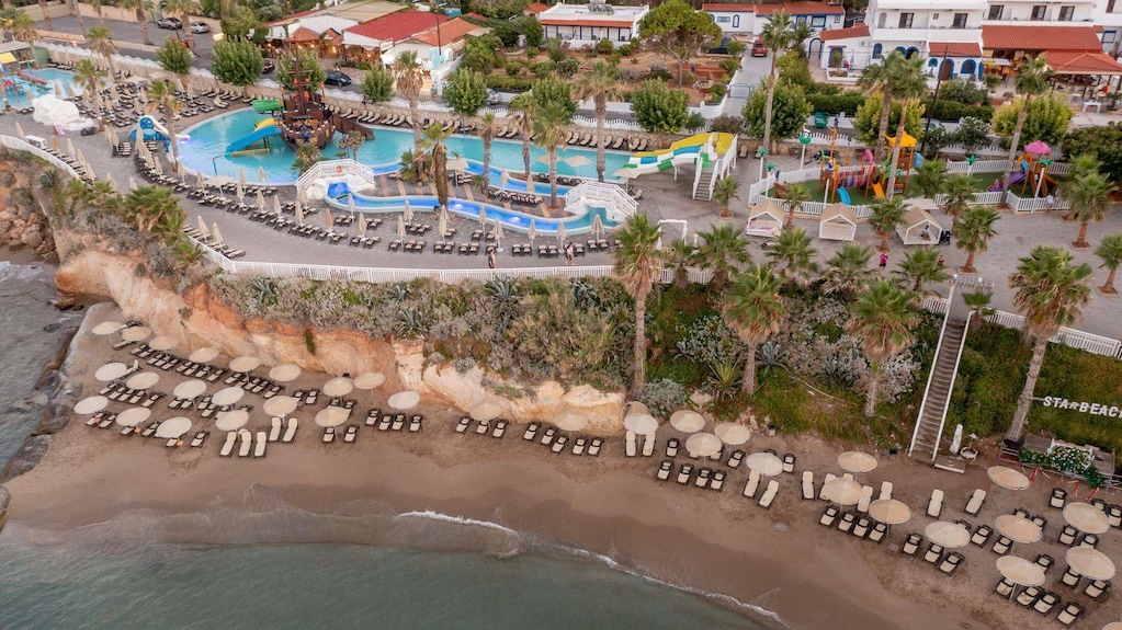 Il Star Beach Village & Water Park gode di una posizione privilegiata sulla costa di Hersonissos, una delle località più apprezzate di Creta. La struttura si trova circa 20-25 km dall’Aeroporto Internazionale di Heraklion (HER) o Chania (CHQ), facilmente raggiungibile con transfer o auto a noleggio.