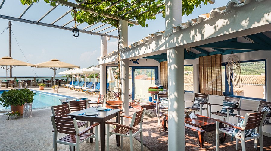 L’atmosfera è informale e rilassata, tipica delle strutture greche tradizionali.