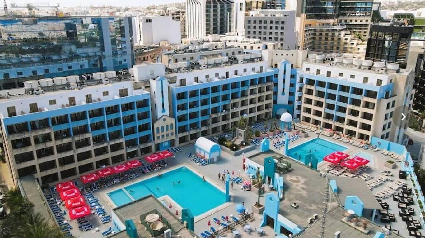 L’hotel si trova a St. Julian’s, una delle località più vivaci e apprezzate di Malta. La posizione è ideale per chi desidera essere vicino sia al mare che ai servizi: la baia di St. George e le spiagge rocciose sono a pochi passi, mentre i numerosi ristoranti, bar e locali di Paceville garantiscono divertimento serale. La zona è ben collegata con il resto dell’isola attraverso un efficiente servizio di autobus, e l’aeroporto dista circa 10 km (circa 20 minuti in auto). Anche la capitale Valletta è facilmente raggiungibile in autobus in 15-20 minuti.
