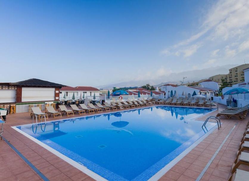 La piscina esterna, spesso riscaldata durante i mesi più freschi, è il cuore dell’hotel: circondata da palme e lettini, offre il luogo ideale per rilassarsi al sole. L’ampio solarium con lettini e ombrelloni (gratuiti o a pagamento a seconda della struttura) permette di godere del clima eccezionale di Tenerife tutto l’anno.