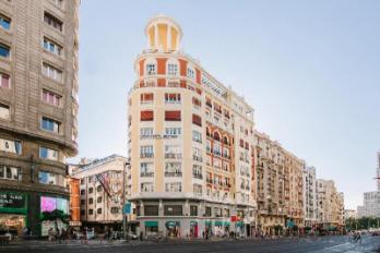 L’hotel si trova sulla Gran Vía, l’arteria principale di Madrid, vicino a Plaza de España. La posizione è perfetta per shopping e cultura, con teatri, cinema e negozi a pochi passi. Metro Plaza de España a 200 metri. Il Palazzo Reale è raggiungibile a piedi, così come il Templo de Debod. La zona è vivace sia di giorno che di sera, con numerosi ristoranti, caffè e bar.