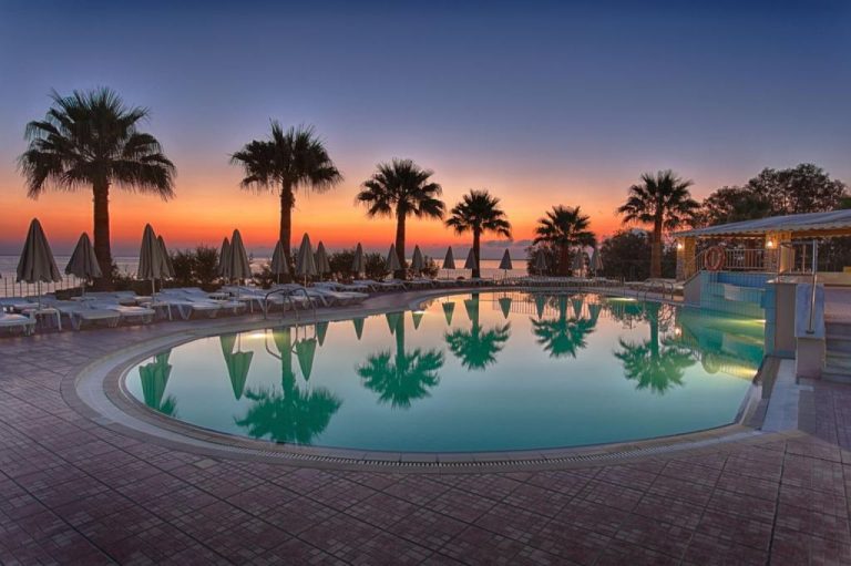 La piscina all’aperto è il cuore della vita sociale della struttura durante le giornate di sole: circondata da palme e vegetazione mediterranea, offre il luogo ideale per rilassarsi, prendere il sole sui comodi lettini e rinfrescarsi con un tuffo nelle acque cristalline. L’ampio solarium con lettini e ombrelloni permette di godere del clima eccezionale di Zante, caratterizzato da oltre 300 giorni di sole all’anno.