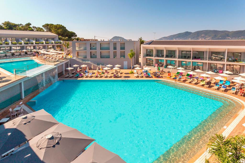 La piscina all’aperto è il cuore della vita sociale della struttura durante le giornate di sole: circondata da palme e vegetazione mediterranea, offre il luogo ideale per rilassarsi, prendere il sole sui comodi lettini e rinfrescarsi con un tuffo nelle acque cristalline. L’ampio solarium con lettini e ombrelloni permette di godere del clima eccezionale di Zante, caratterizzato da oltre 300 giorni di sole all’anno.