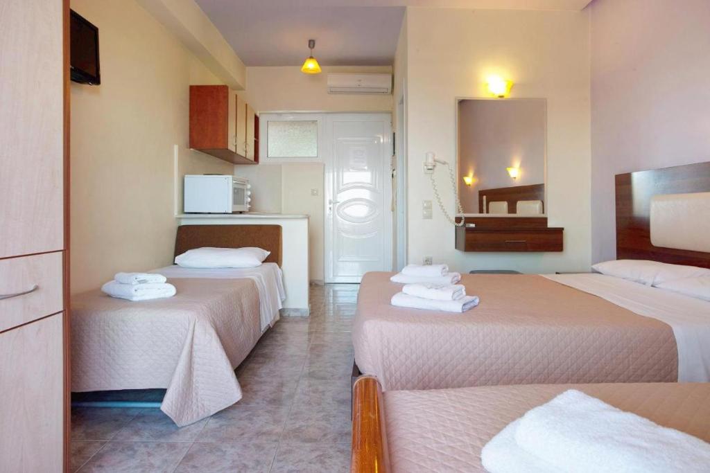 La struttura offre un eccellente rapporto qualità-prezzo, con servizi di buon livello, camere confortevoli e una posizione strategica per esplorare tutte le meraviglie dell’isola. Il personale cordiale e disponibile contribuisce a creare un’atmosfera accogliente e rilassata, tipica dell’ospitalità ellenica.