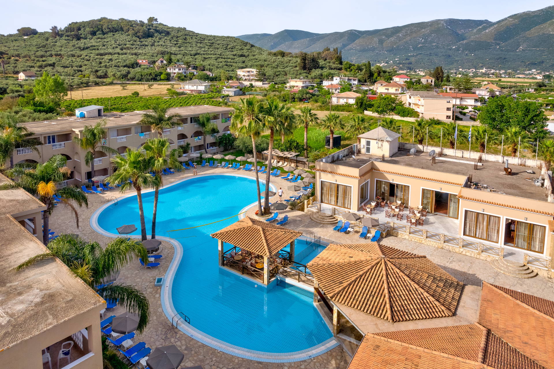 La piscina all’aperto è il cuore della vita sociale della struttura durante le giornate di sole: circondata da palme e vegetazione mediterranea, offre il luogo ideale per rilassarsi, prendere il sole sui comodi lettini e rinfrescarsi con un tuffo nelle acque cristalline. L’ampio solarium con lettini e ombrelloni permette di godere del clima eccezionale di Zante, caratterizzato da oltre 300 giorni di sole all’anno.